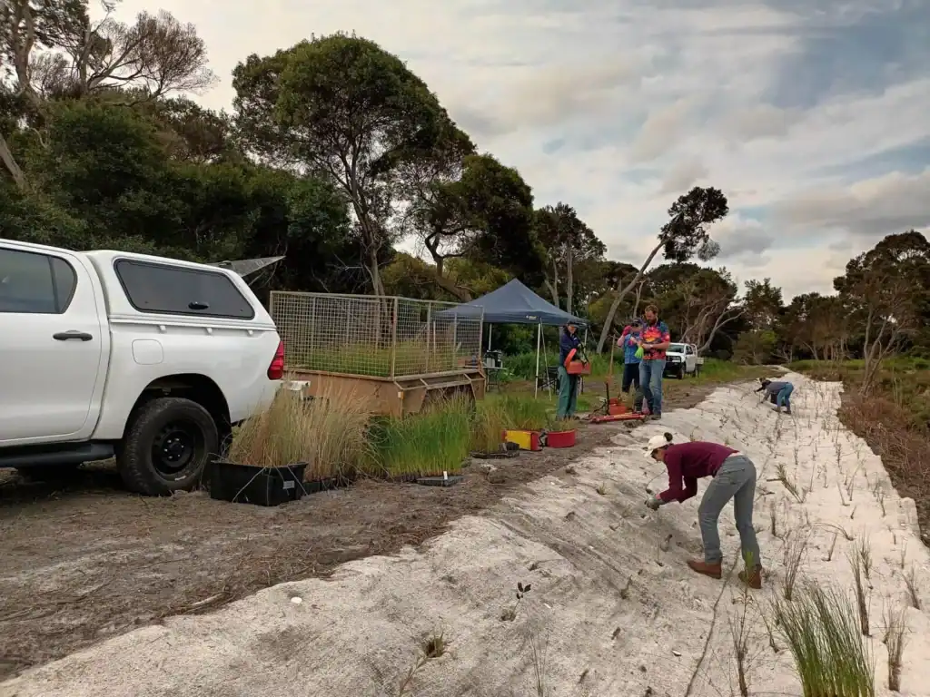 Navigating a mixed bag of winter storms and scorching (by our standards) spring heat, in the end we covered the northern bank with more than 5,000 native seedlings! Thanks also to the Albany weather for finishing the job with a downpour to give the new plants a soak in prep for the summer ahead.
