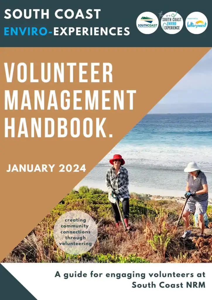 Creating community connections through environmental volunteering requires good management of volunteers. South Cost NRM has developed a Volunteer Management Handbook to provide guidance to South Coast NRM staff for when they engage volunteers in their projects. It is designed to ensure staff have clarity and understanding on the responsibilities they have to the volunteers they engage, they understand what they can expect volunteers to do, they know where to go to find clarification and that overall, there is a consistent approach across the organisation when working with volunteers.